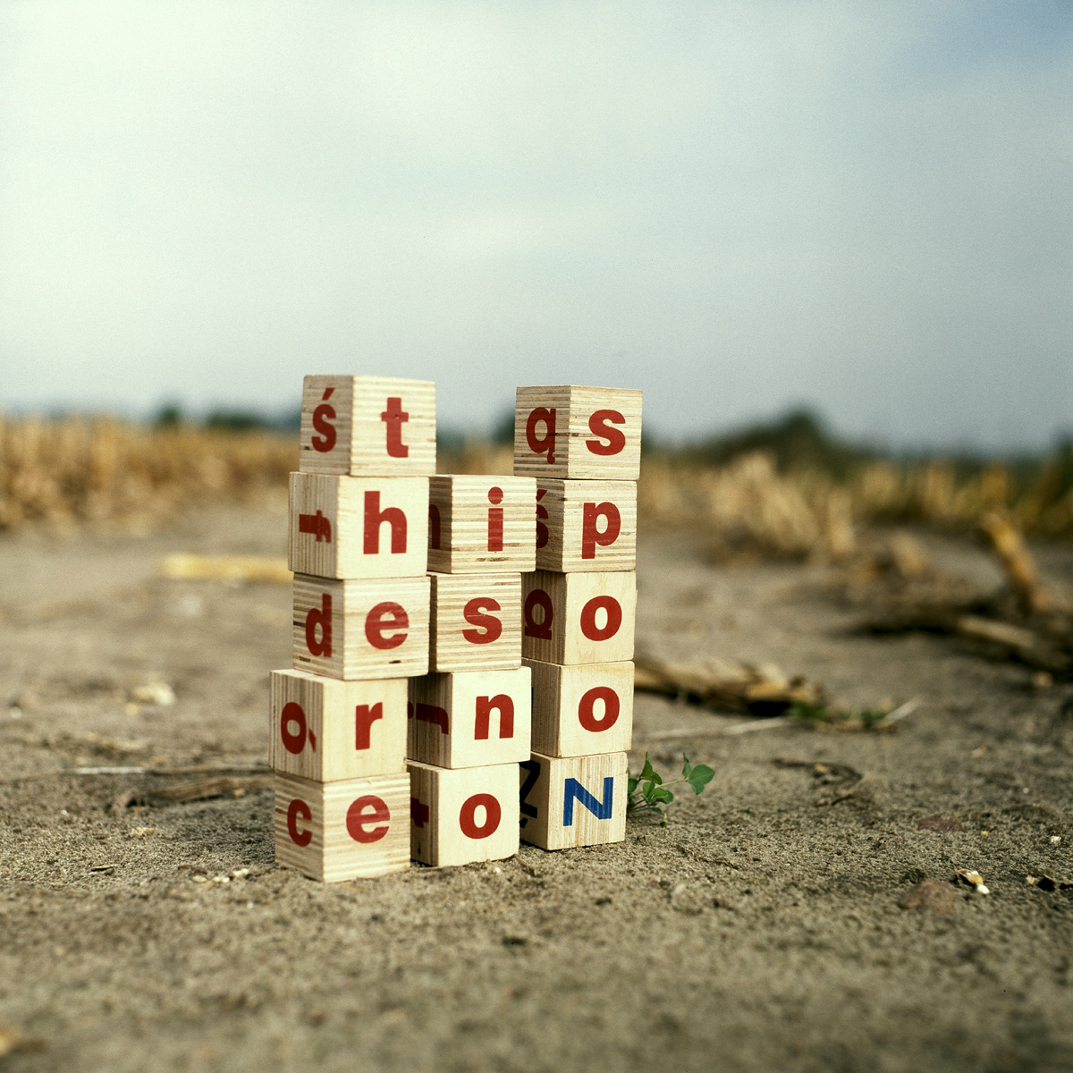 Zdjęcie klocków z literkami ułożonymi w napis z pewnego kultowego filmu. Fotografia analogowa. Wykonana aparatem Hasselblad 500 c/m na kliszy Kodak. Skanowana profesjonalnym skanerem Epson V800 Photo w rozdzielczości 3200 DPI.