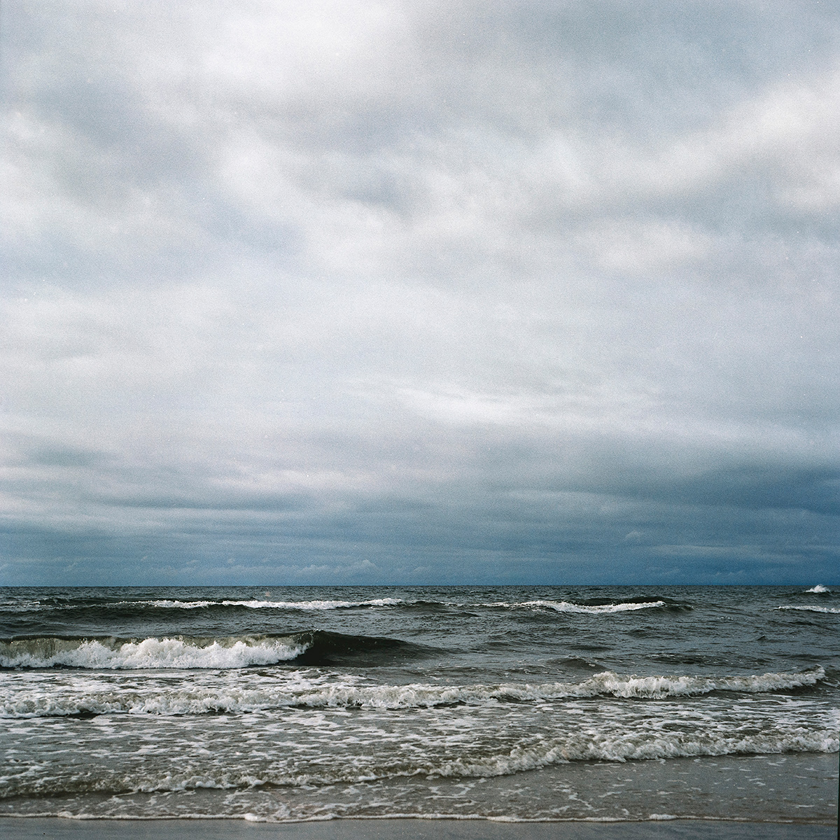 Fotografia analogowa. Bałtyk podczas letniego wzburzenia. Wykonana aparatem Hasselblad 500 c/m na materiale Ilford Kodak. Skanowana profesjonalnym skanerem Epson V800 Photo w rozdzielczości 3200 DPI.