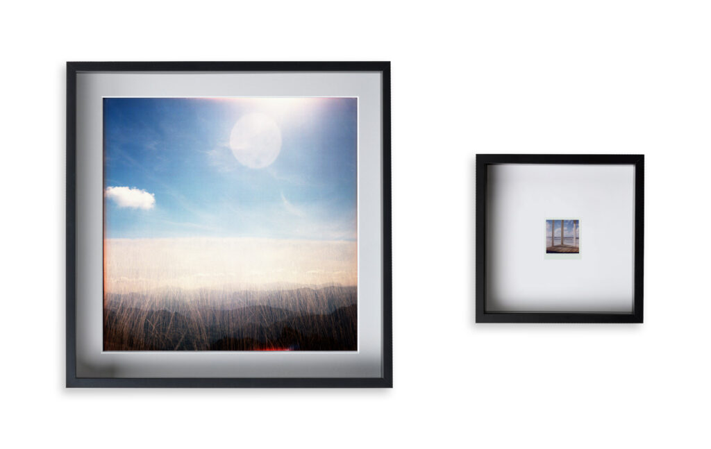 20 fotografii oprawionych w czarne, drewniane ramki formatu 50×50 cm brutto + 20 polaroidów oprawionych w czarne ramki 20×20 cm brutto.