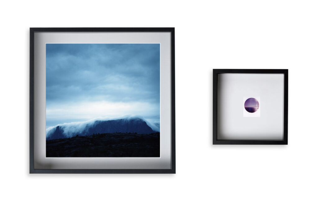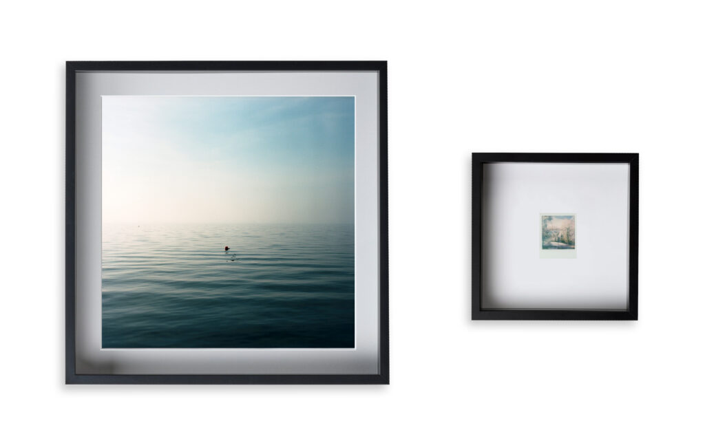 20 fotografii oprawionych w czarne, cienkie aluminiowe ramki formatu 50×50 cm brutto + 2 fotografie 90×90 cm brutto oprawione w ten sam sposób.